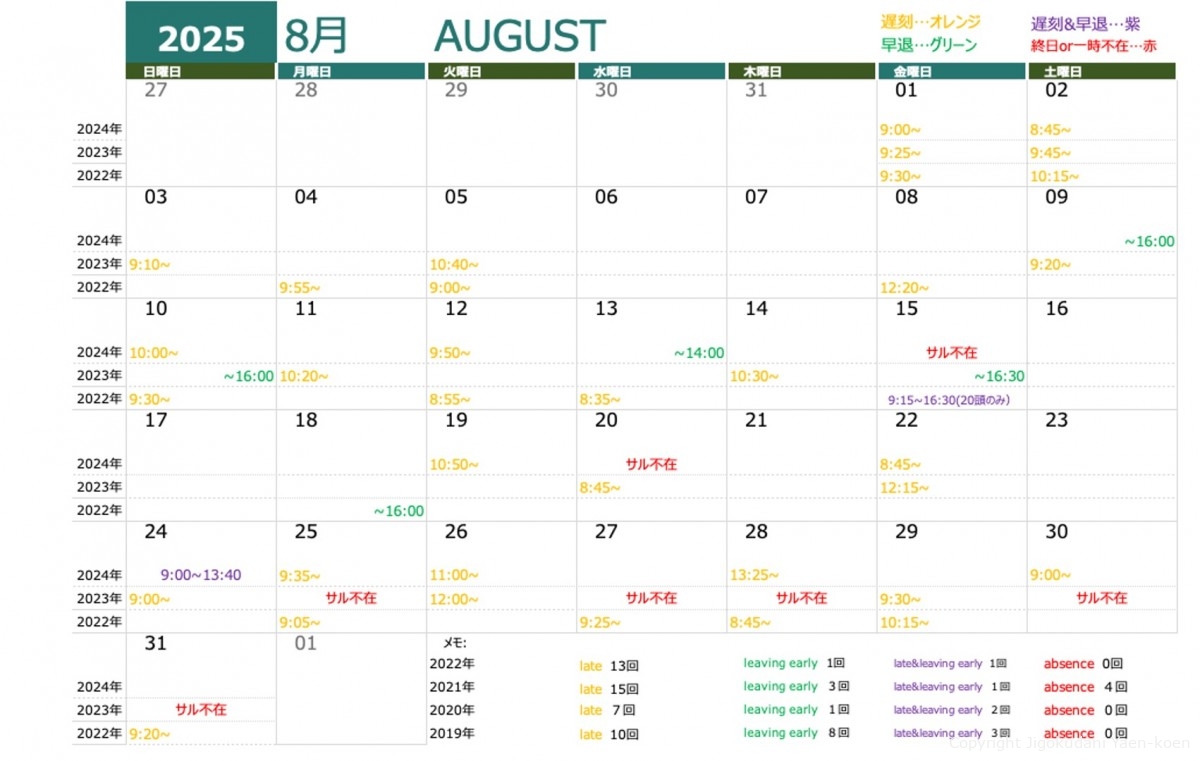 Monkeys appearance forecast AUGUST.18~AUGUST.25
